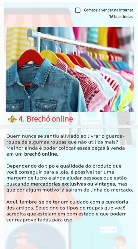 16 boas ideias para começar um negócio on-line. Este e-book ensina um passo a passo de como escolher os produtos certos e onde encontrar. As principais plataformas de vendas onde você pode iniciar o seu negócio próprio. Após o pagamento você receberá o livro E-book no seu e-mail ou watssap
