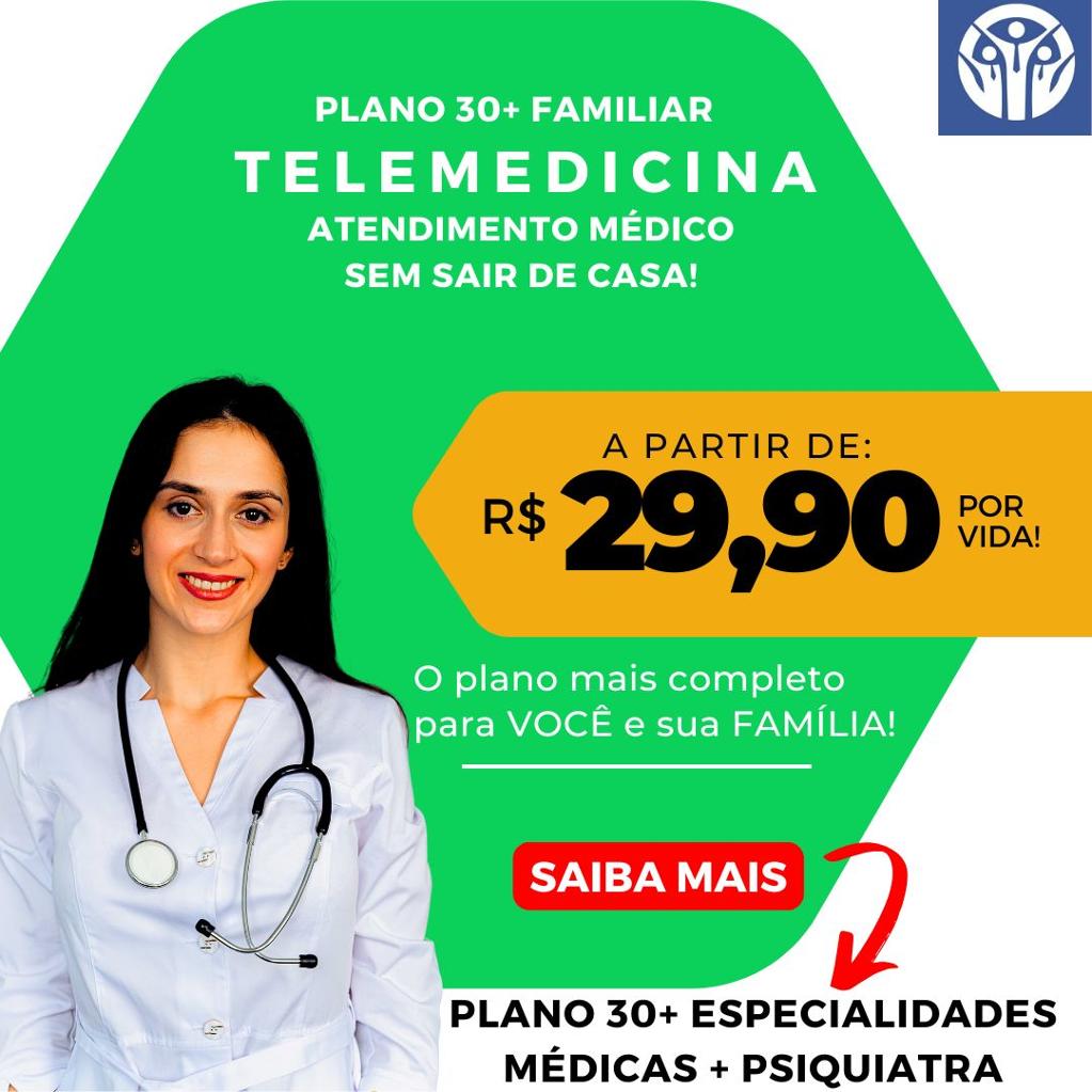 Plano 30+ Especialidades Médicas: 01 Titular + 03 Dependentes.
