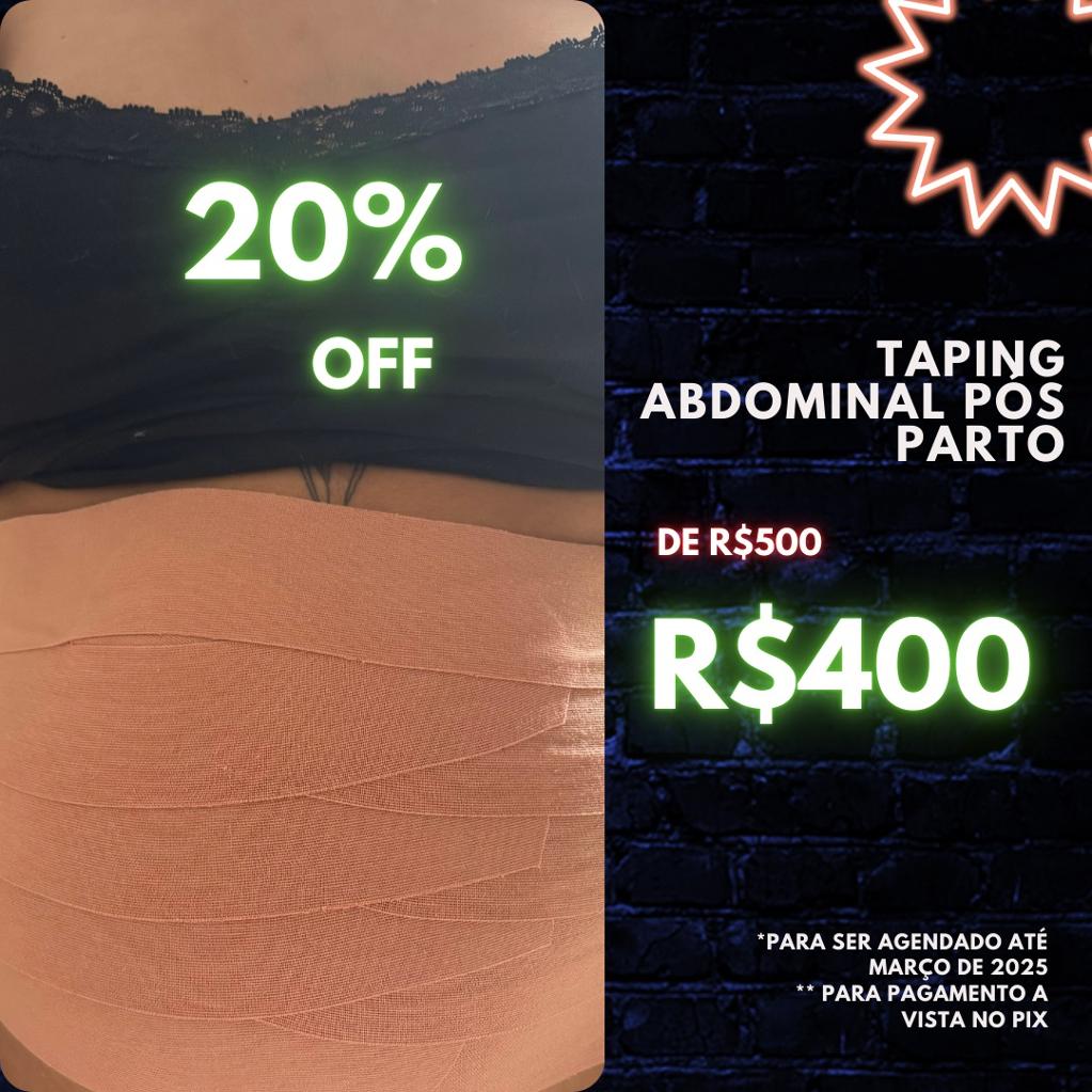 Serviço de aplicação de taping abdominal pós parto. valor promocional black Week 2024