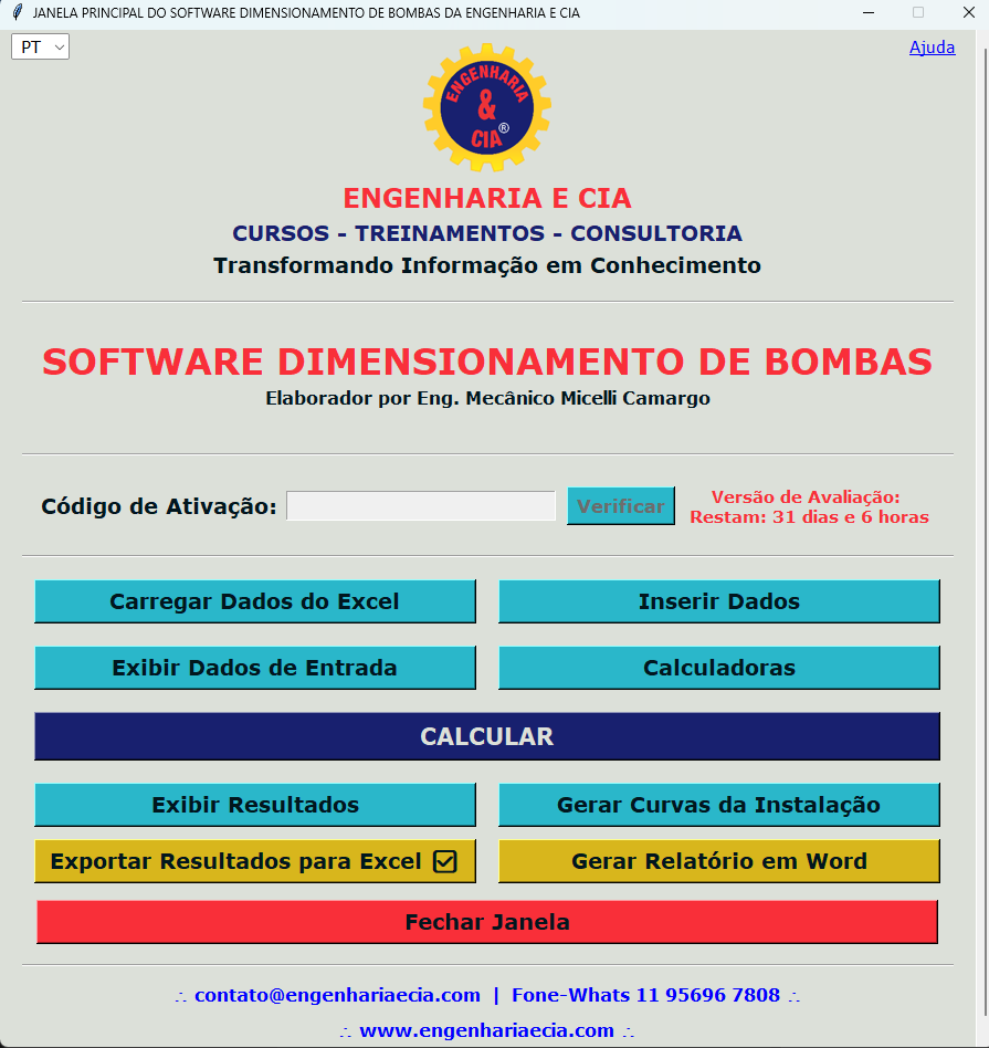 Software para PC Calculadora Dimensionamento de Bombas - Plano Vitalício [SOMENTE CARTÃO DE CRÉDITO]