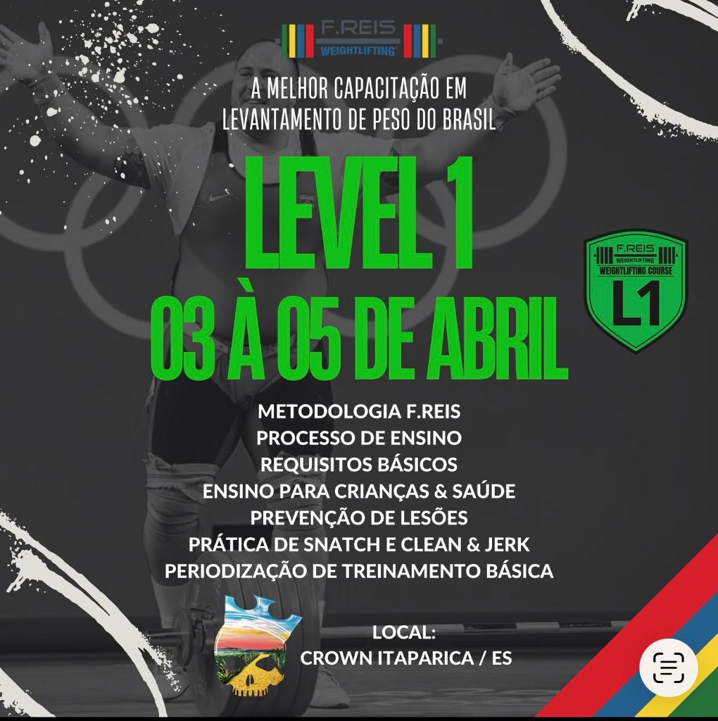 Vila Velha, prepare-se para a elite do LPO! De 03 a 05 de abril de 2026, a @crownitaparica recebe o curso Level 1 da F.Reis. Venha aprender a Metodologia desenvolvida pelo atleta olímpico Fernando Reis, focada em técnica, performance e segurança no Levantamento de Peso Olímpico. O que está incluso na sua imersão: Kit Exclusivo F.Reis; Café da manhã e Almoço no local; Coffee break; Certificado de conclusão. Não perca a chance de dominar os movimentos que são a base da força e potência no esporte. Vagas limitadas! Garanta a sua agora em: www.freis.net.br (Parcelamento em até 10x ou desconto especial à vista). #LPO #FReisWeightlifting #CrownItaparica #LevantamentoDePeso #CrossfitVilaVelha #MetodologiaFReis